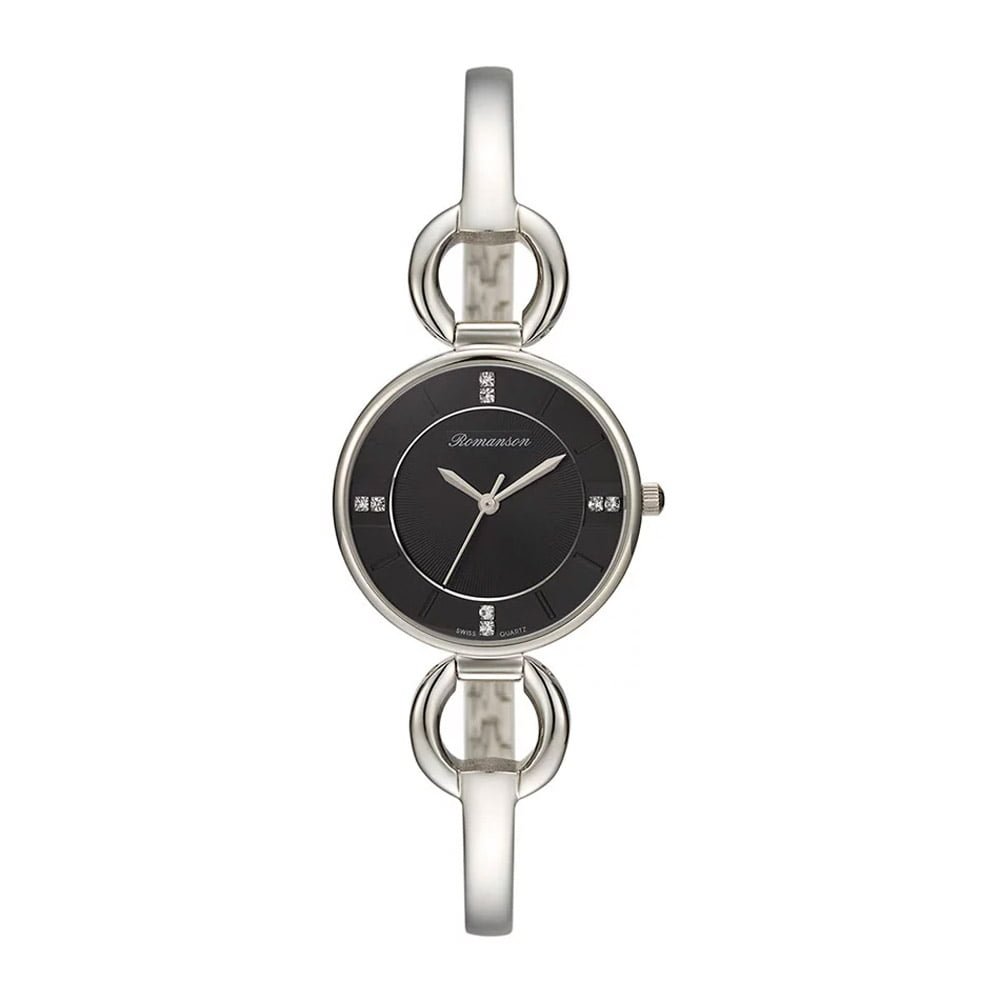 Romanson Black Dial Analog Stainless Steel Strap Watch for Women