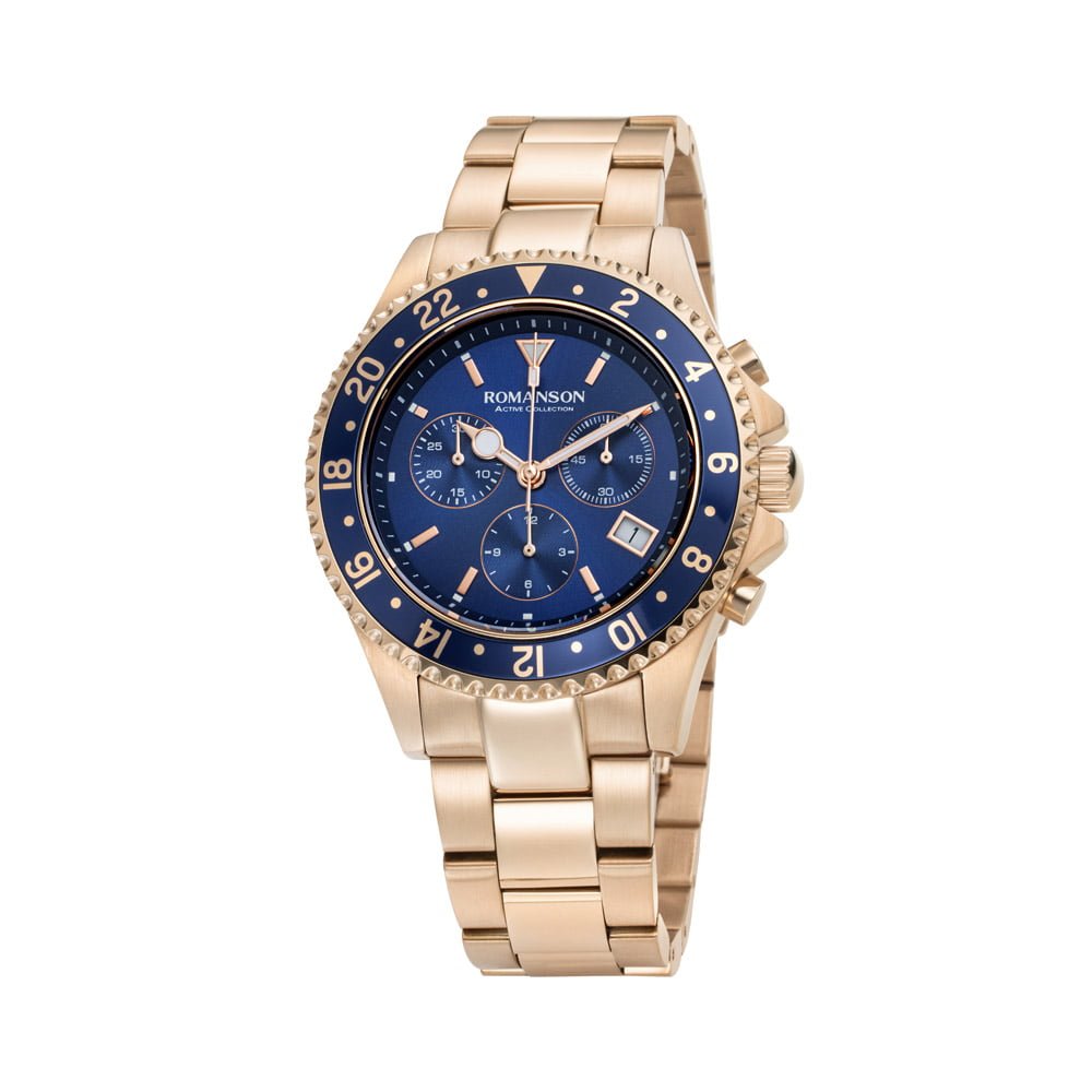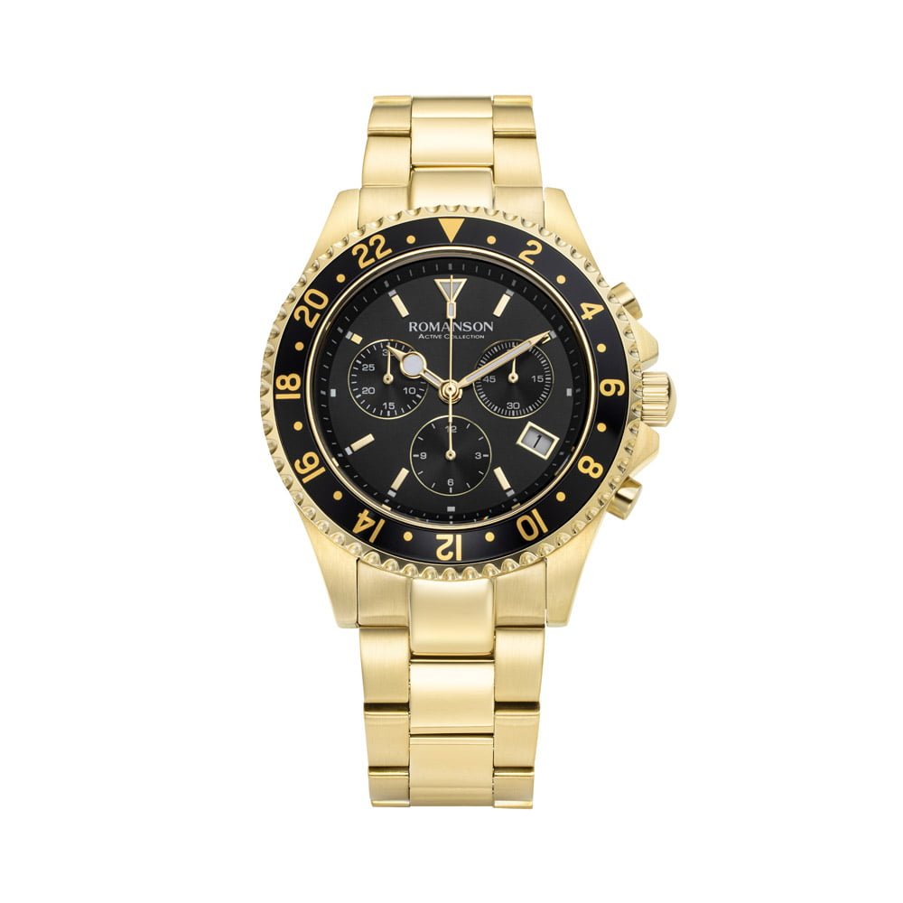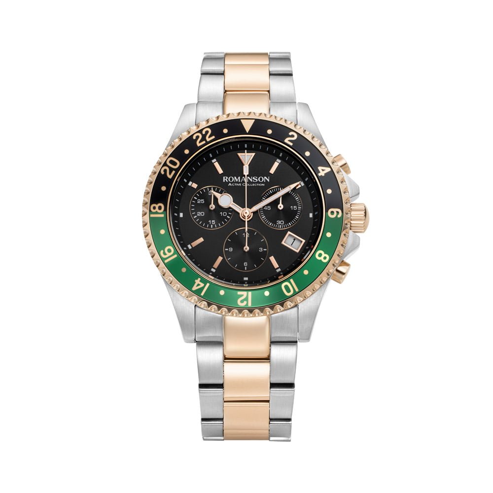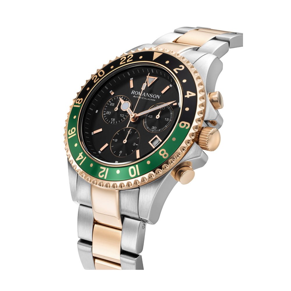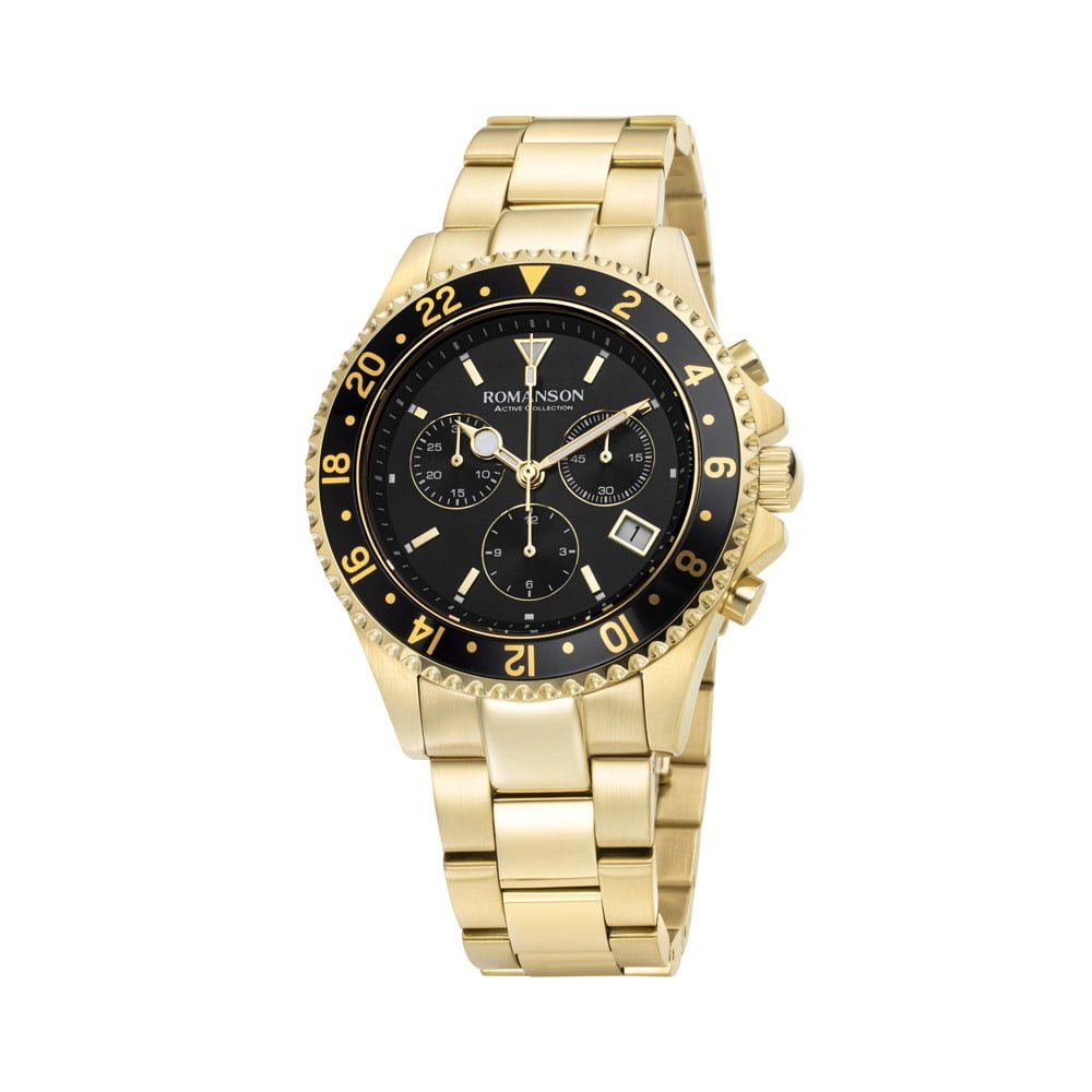 Elevate your wrist game with this striking timepiece. The black dial exudes boldness, while the stainless steel strap ensures durability and a modern edge. Precision meets style with the chronograph feature, making this Romanson watch a perfect companion for those who appreciate both functionality and sophistication. Make a statement with every tick.