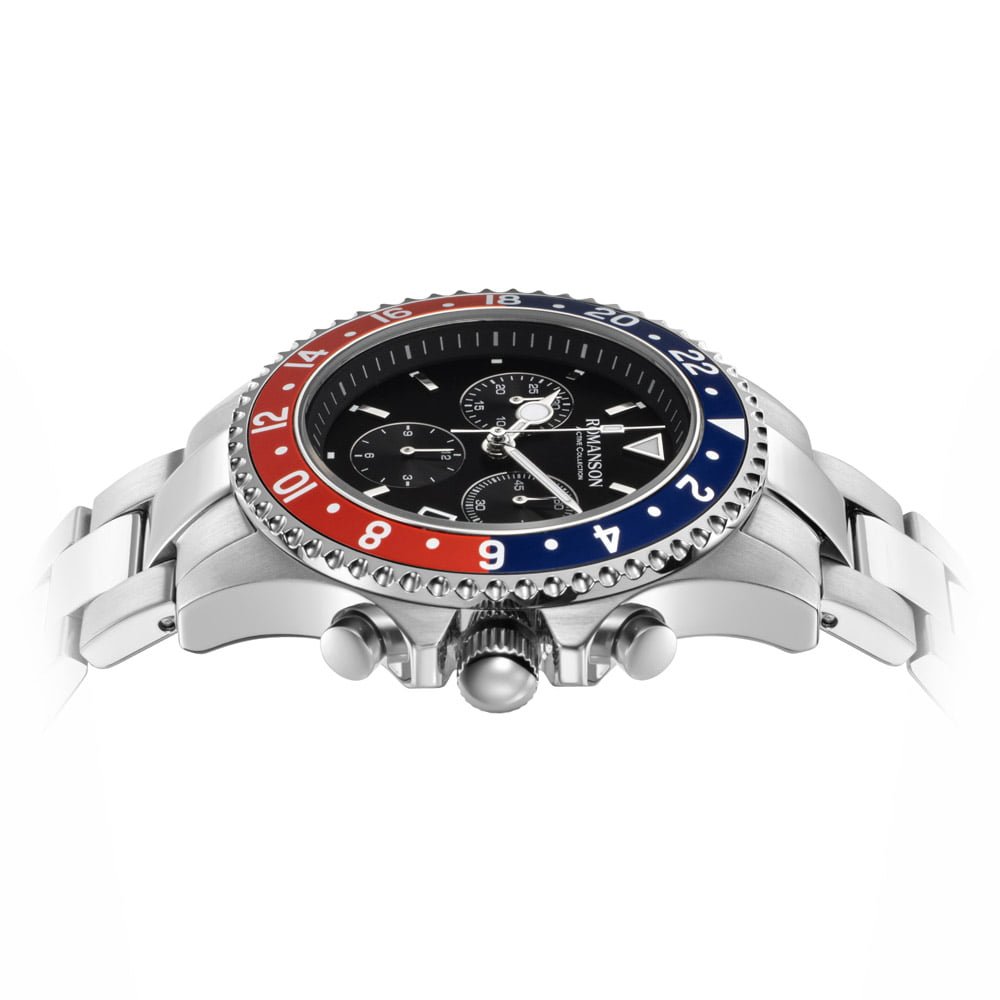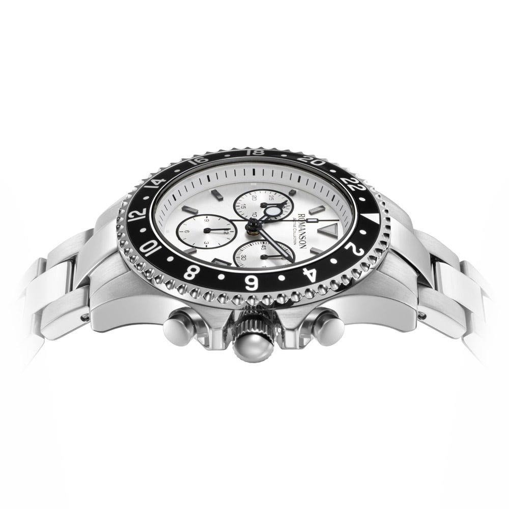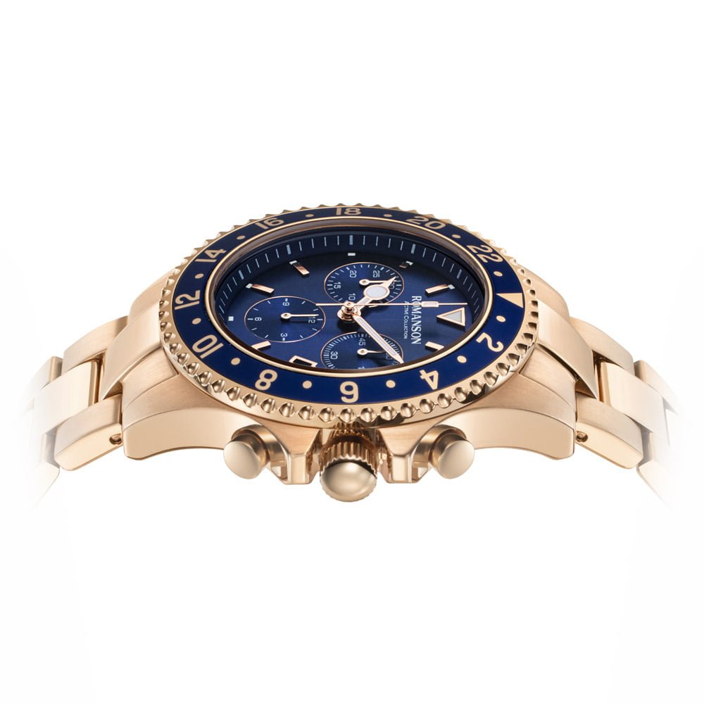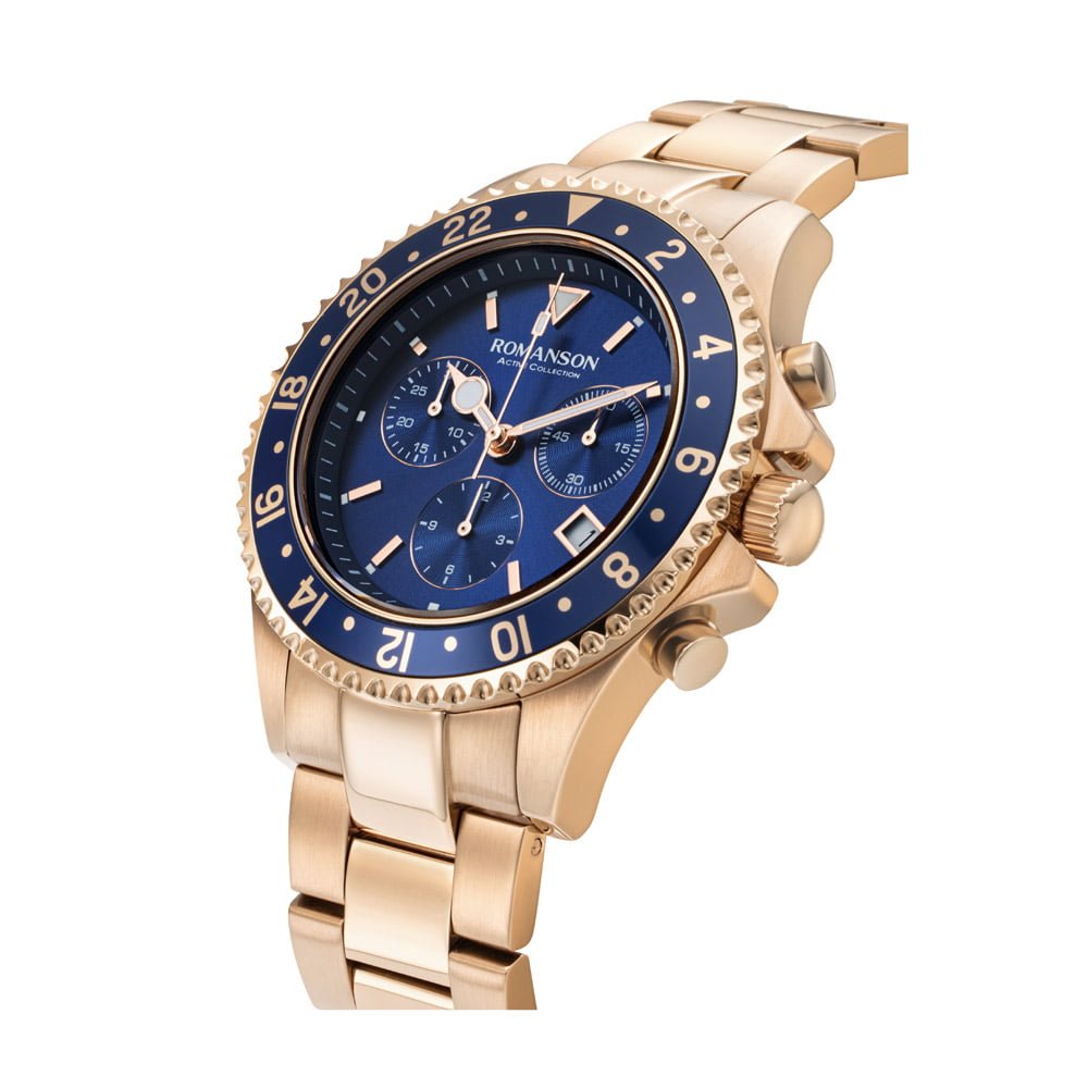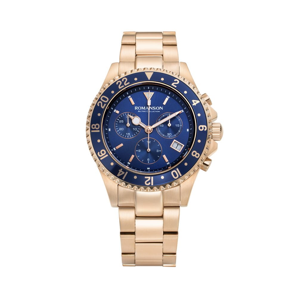 Elevate your wrist game with this striking timepiece. The black dial exudes boldness, while the stainless steel strap ensures durability and a modern edge. Precision meets style with the chronograph feature, making this Romanson watch a perfect companion for those who appreciate both functionality and sophistication. Make a statement with every tick.