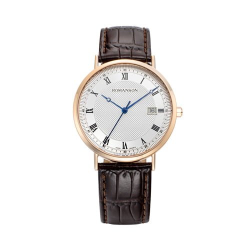 Dive into sophistication with this timeless timepiece. The striking silver dial, paired with a genuine leather strap, exudes both elegance and versatility. Precision analog movement ensures accurate timekeeping, making this Romanson watch the perfect blend of style and functionality. Elevate your wristwear with a touch of classic charm.