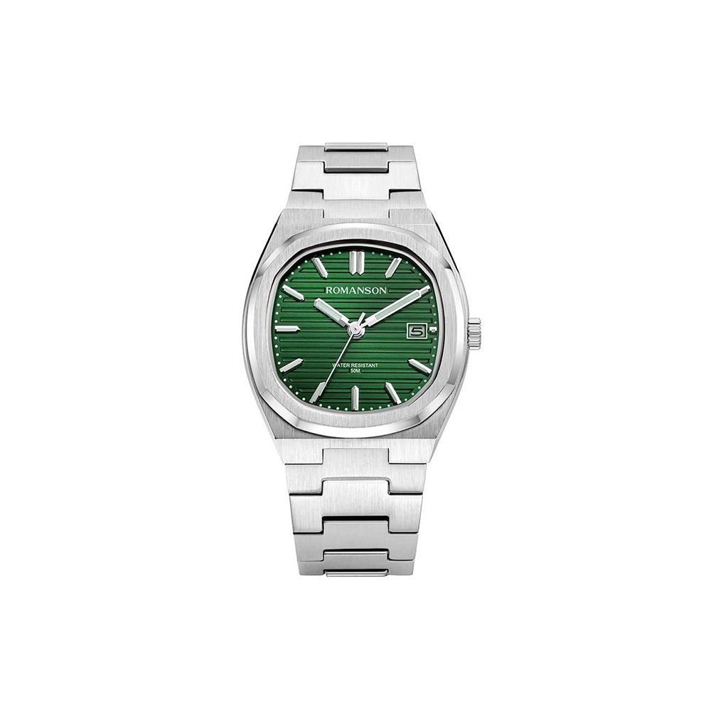 Discover the bold, modern charm of the Romanson TM3BF008MMWGN watch—a timepiece that perfectly blends style and functionality. It features a 38 mm octagonal stainless steel case paired with a seamlessly integrated bracelet, giving it a sleek, contemporary edge.