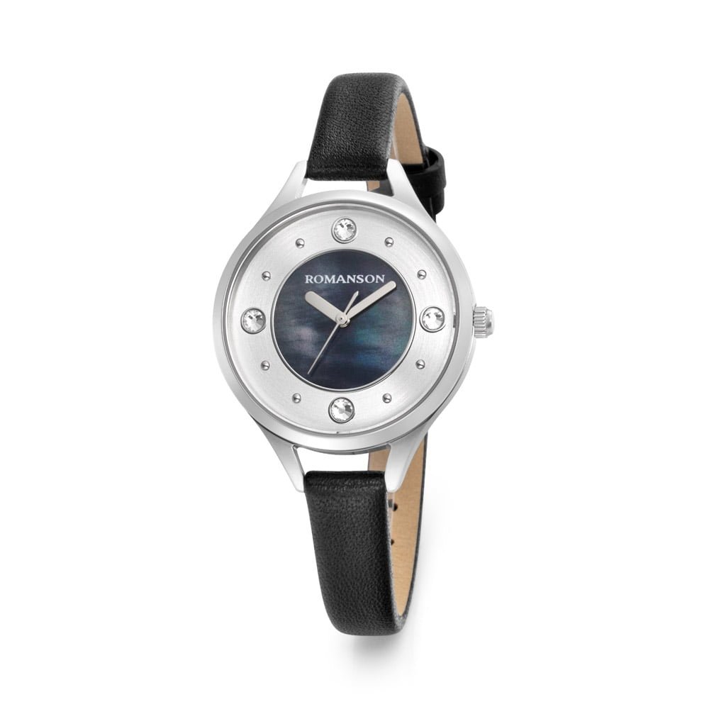 Romanson Black Dial Leather Strap Analog Watch for Women