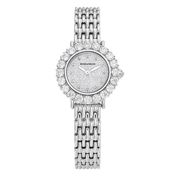 Add a touch of glamour to your ensemble with this exquisite timepiece. Encased in shimmering stones, the stainless steel strap exudes elegance and sophistication. This Romanson watch marries timeless design with luxurious detailing, making it the perfect accessory for any occasion. Elevate your style with the captivating allure of stones, epitomizing the essence of modern femininity.